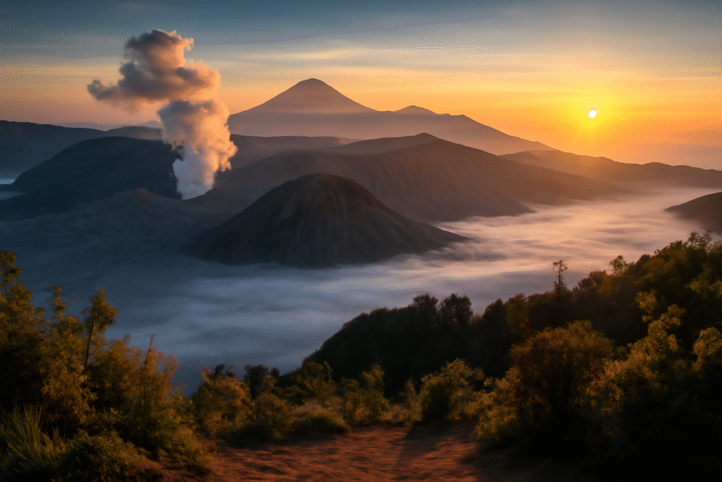 Salah satu daya tarik utama di Taman Nasional Bromo Tengger Semeru adalah pemandangan matahari terbit dari puncak Penanjakan. Saat matahari mulai terbit, pemandangan Gunung Bromo yang menyala, dikelilingi oleh lautan pasir yang luas, menciptakan pemandangan yang tak terlupakan. Pengunjung bisa menggunakan jeep atau berjalan kaki menuju titik pandang untuk menikmati keindahan alam yang luar biasa ini.